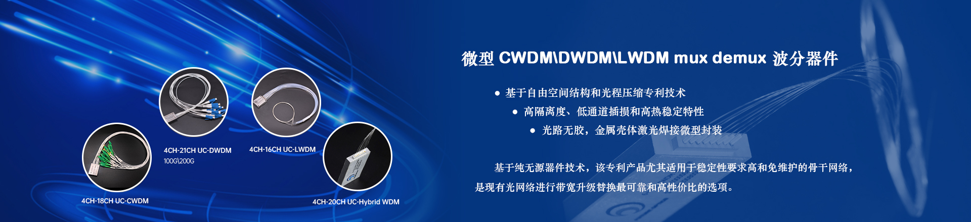 4008云顶集团科技聚焦精密光学器件的深度定制和垂直整合制造,为光通信、数据中心和机器视觉客户提供一站式服务。包括z-block从滤波片到光口的深度定制、无源波分器件的深度定制:包括插损配对均布、光程压缩和负50度超低工作温度运行等。